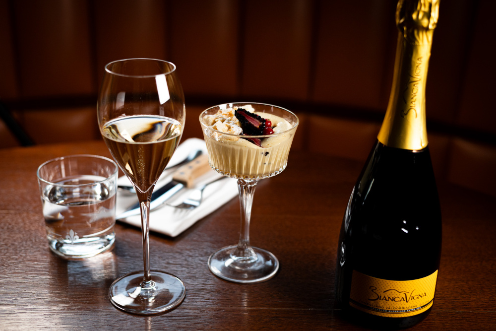 vyšlehané žloutky s kapkou vína Marsala, třtinová melasa, lesní ovoce